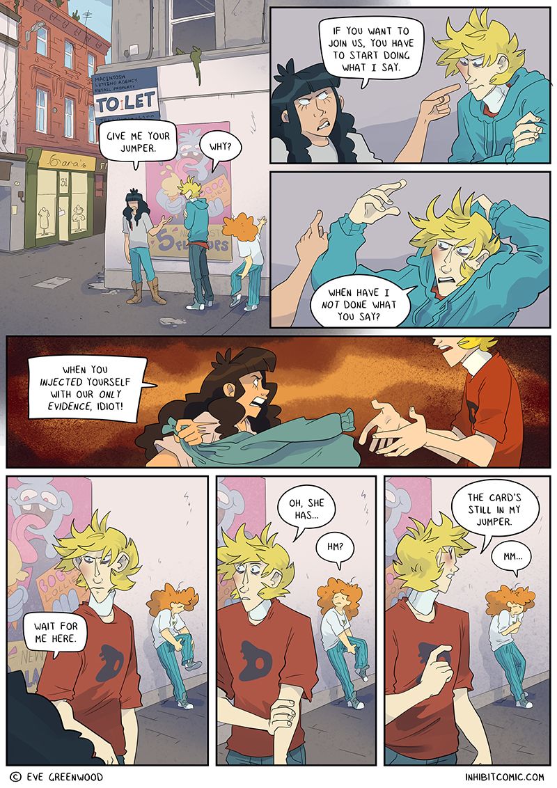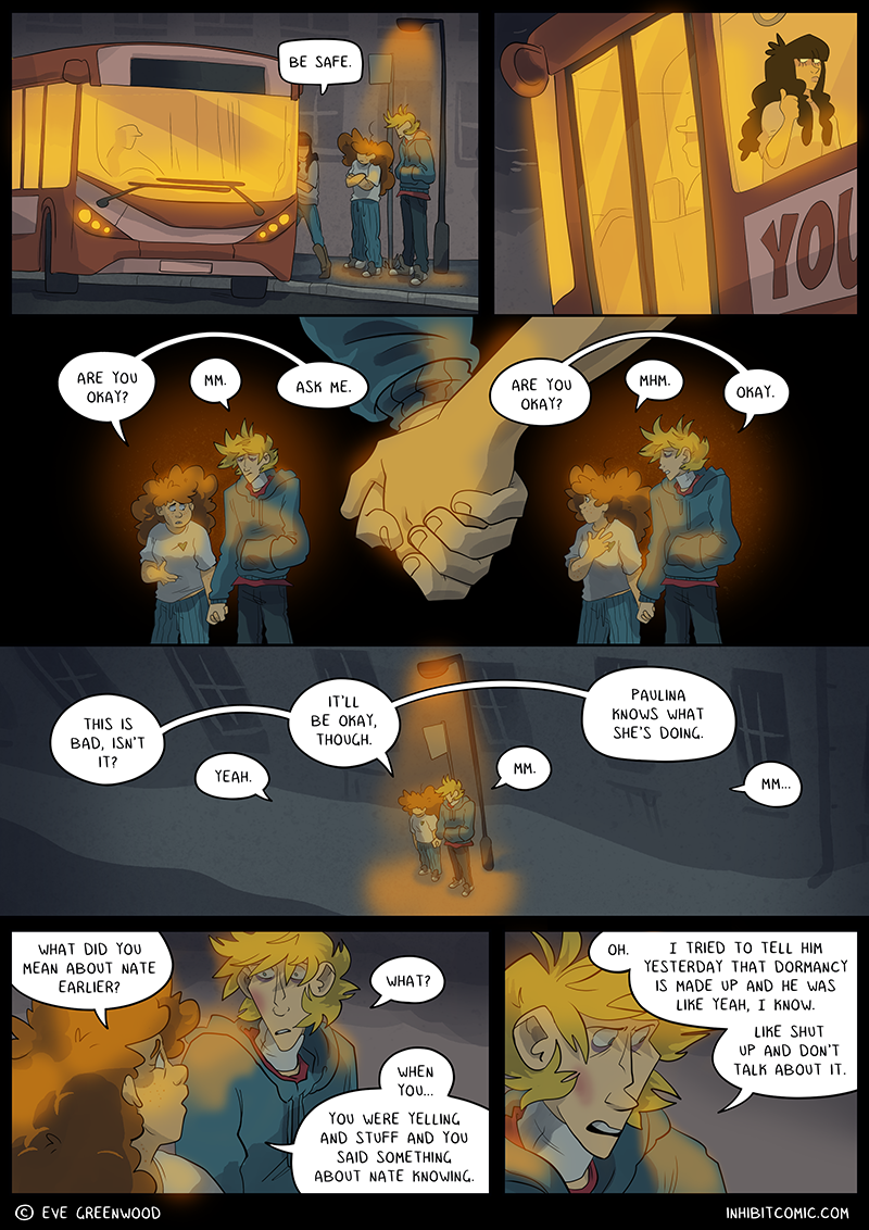 for the 9th year a in row (?!?), here are my four favourite inhibitcomic.com pages from 2023! with colouring from @spiremint. umm spoilers don't look if you arent caught up