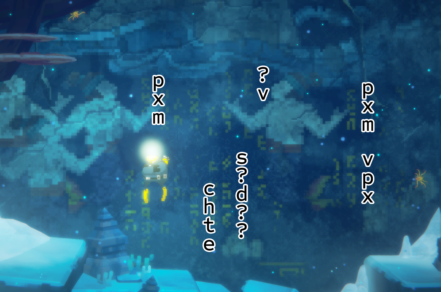 It's fine, it's fine, I'm not mad about it. It meant there was something concrete to show and even though I was a little disappointed, I do have some fun finds to show off. I didn't look up if anyone else had already done this before giving it a go (and people have, of course; the game came out in 2023) but it's not about being the first to decipher it. It's about being a crazy conlanger who saw Potential.